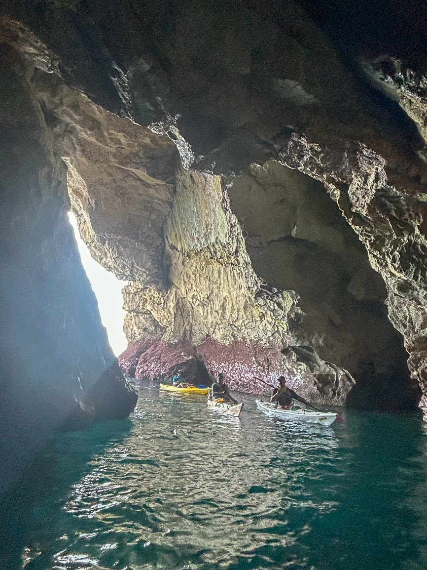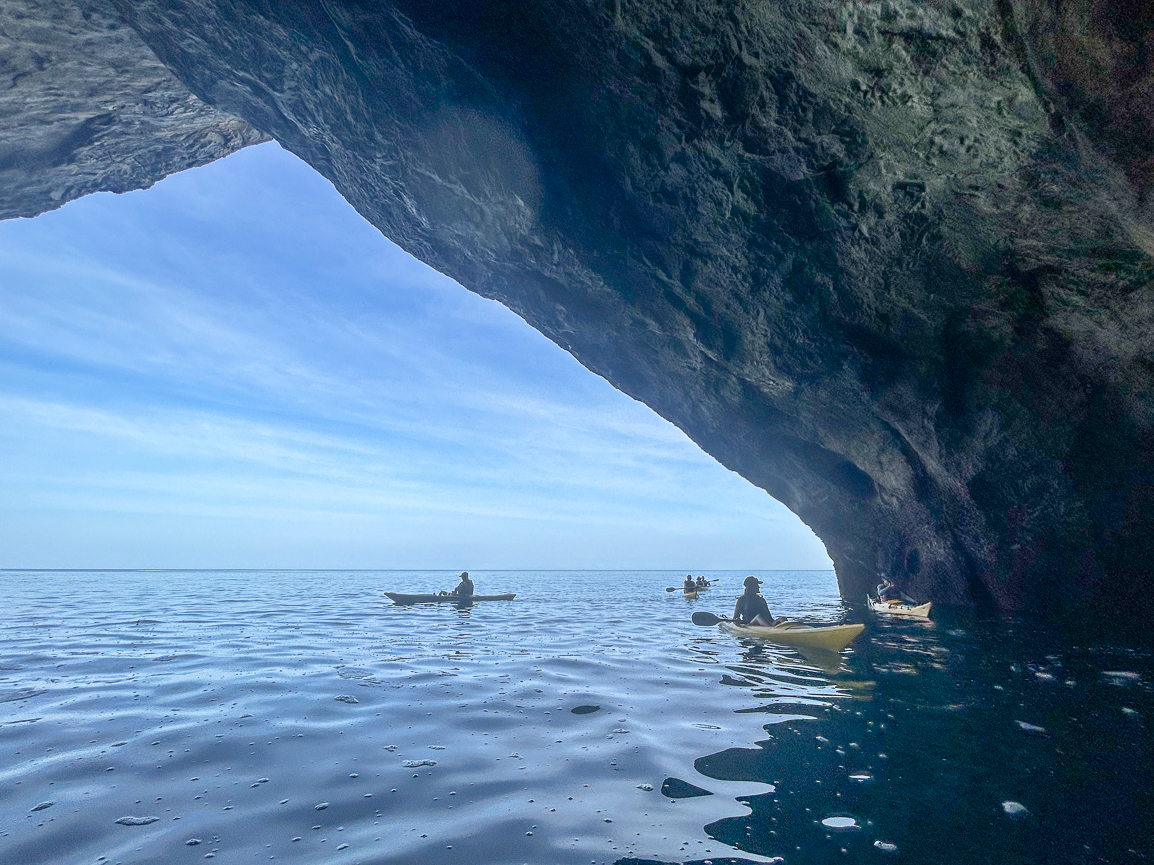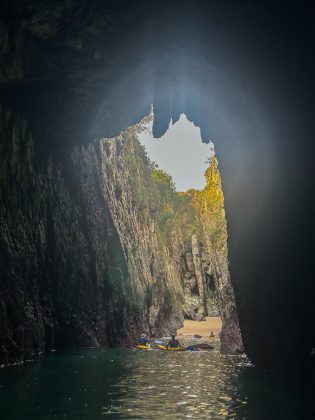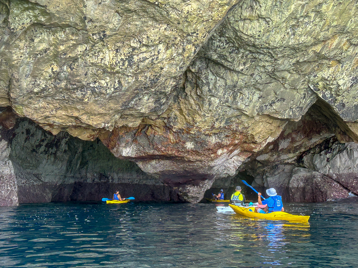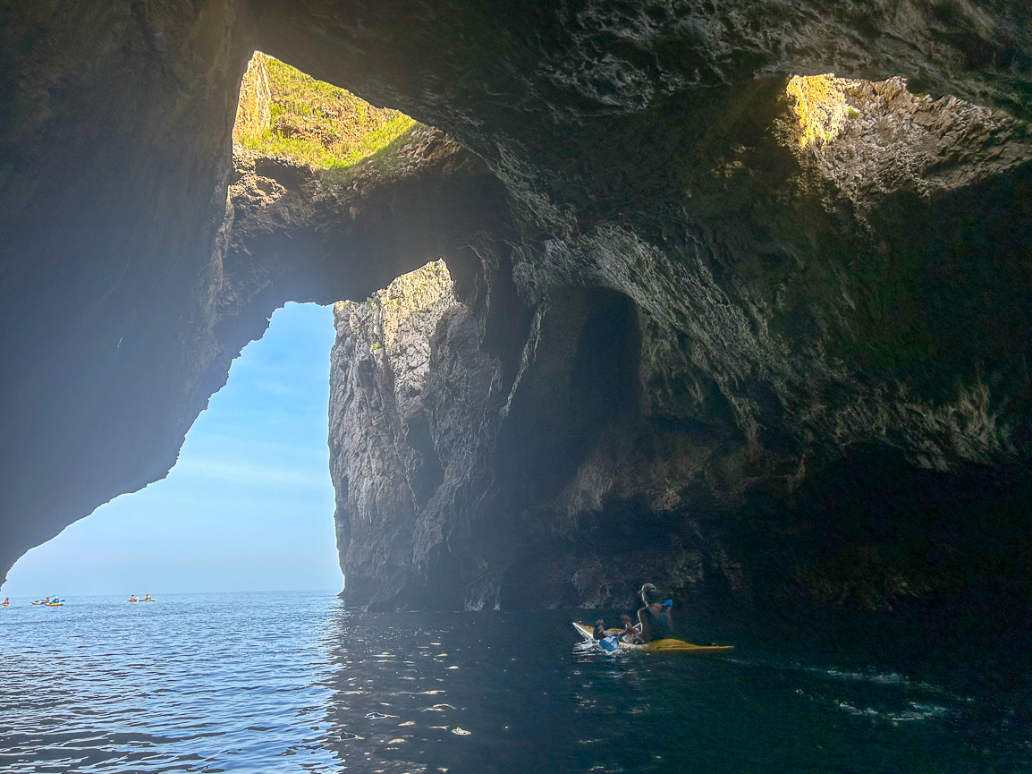 As we entered the sea, we were surprised not only by the calm waters and lack of waves but also by the pleasant temperature despite being late autumn. This is the Cantabrian Sea! The kayaks gently sliced through the water as we left the shore behind, under the skilled guidance of Calo. Hugging the cliffs of Cantabria is an incredible experience, especially as the rocks began to reveal unexpected gems like Playa de la Canal within minutes.
