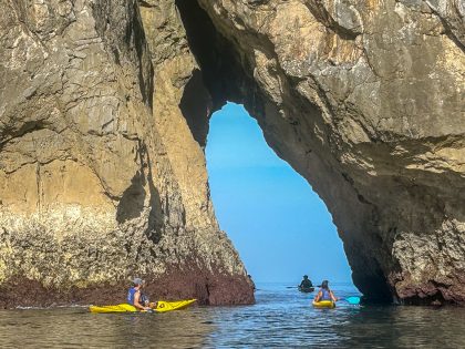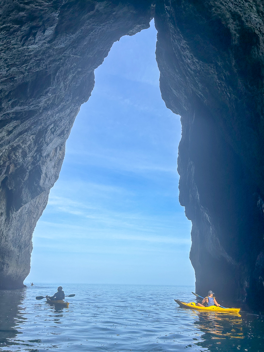 A unique kayaking route: an excursion through the Cantabrian Sea, exploring caves and admiring the Picos de Europa.