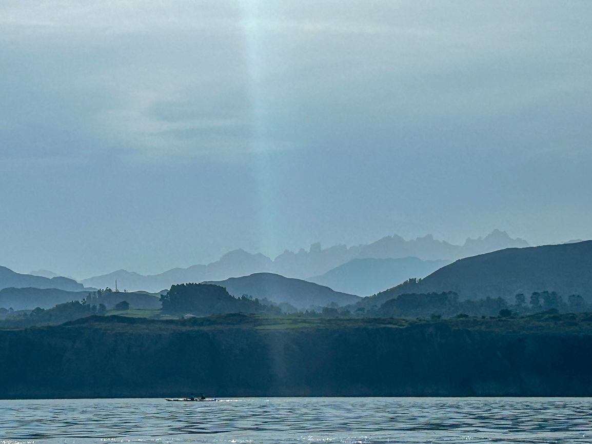 We reached Playa de Guadamía but didn’t enter. Our guides noticed a change in the waves, which were growing stronger, so we decided to turn back toward our starting point. However, the surprises didn’t end there. Paddling further from the coast allowed us to admire the incredible mountain range of the Picos de Europa from the sea in a kayak!