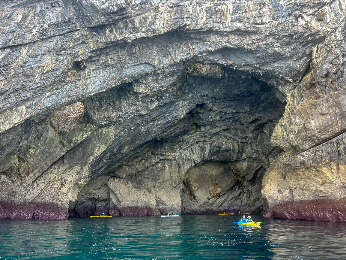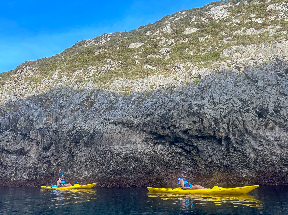Entrando in mare ci ha sorpreso non solo la tranquillità e l’assenza di onde, ma anche la temperatura piacevole, nonostante fosse fine autunno. Siamo nel Cantabrico! I kayak iniziano a tagliare dolcemente l’acqua, lasciandoci la riva alle spalle sotto la guida esperta di Calo. Costeggiare le scogliere della Cantabria è un’esperienza incredibile. Soprattutto perché, dopo pochi minuti, le rocce iniziano a regalarci angoli inaspettati come la Playa de la Canal.
