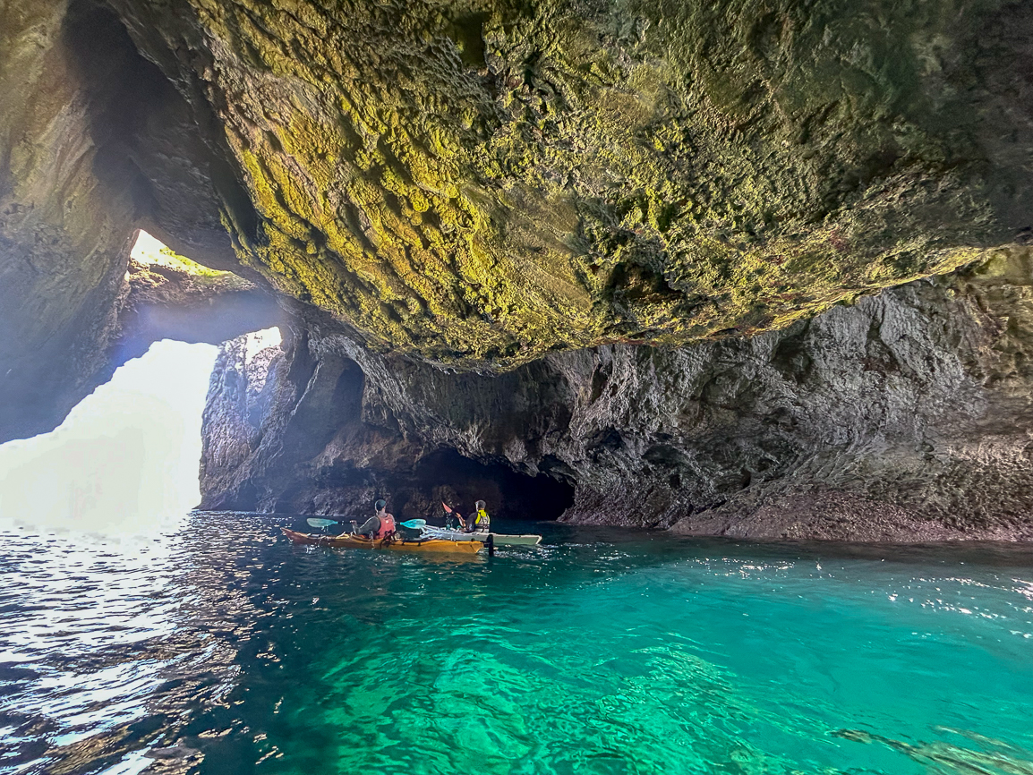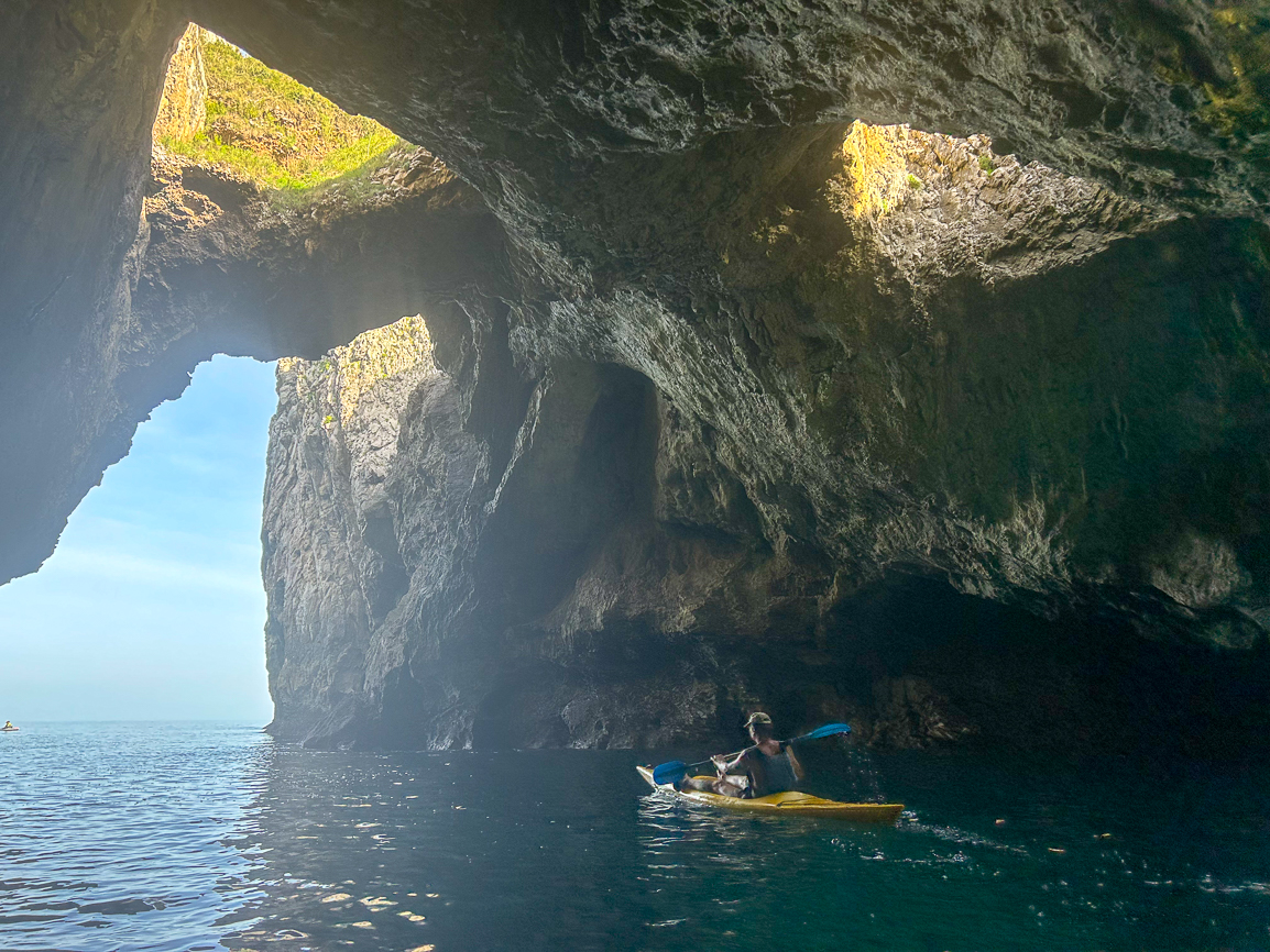 Una rotta in kayak diversa: un’escursione in mezzo al Mar Cantabrico esplorando grotte e ammirando i Picos de Europa.